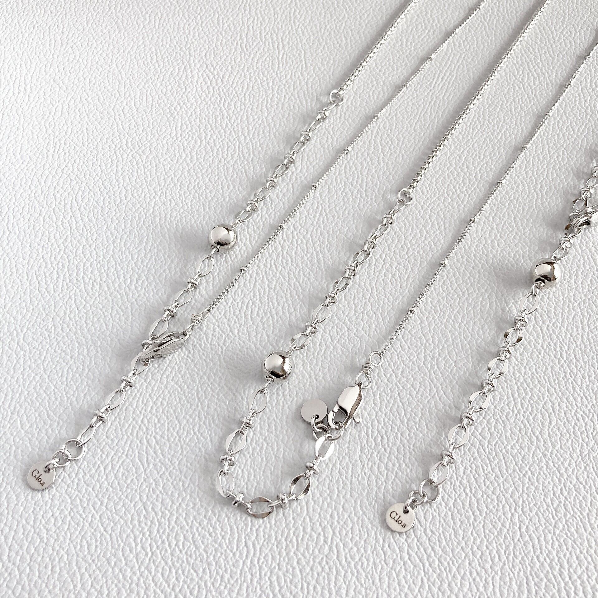 切り替えのあるチェーンのどちらを正面にしても表情が変わり、金具の止め方で一つでさらに変わります。