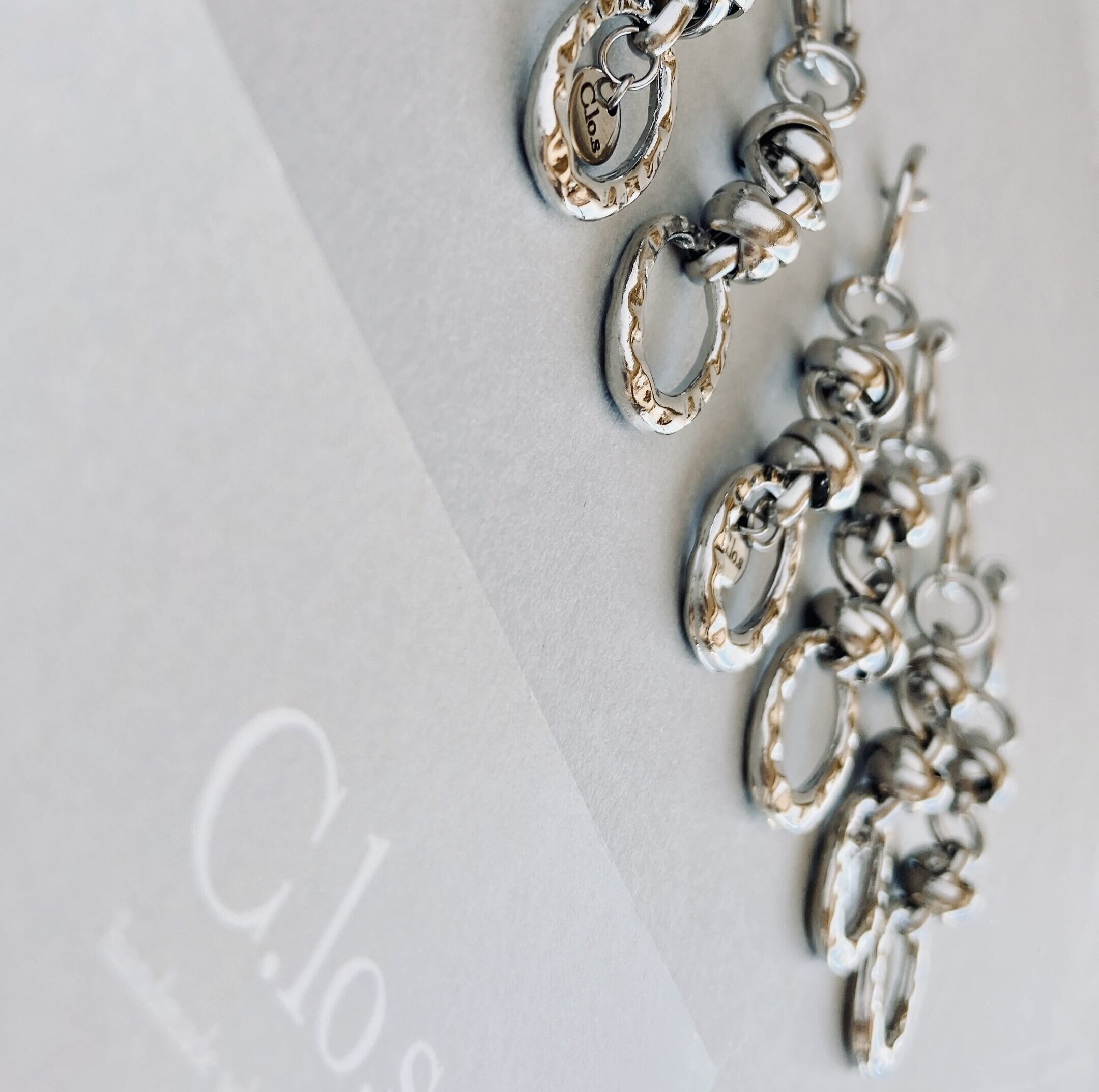 オーバルチャームを合わせたオールシルバーカラーのアクセサリーです。